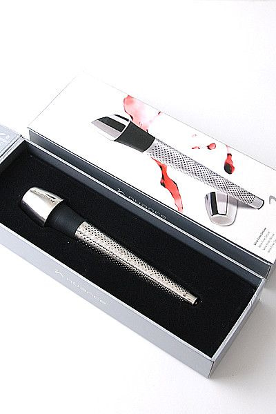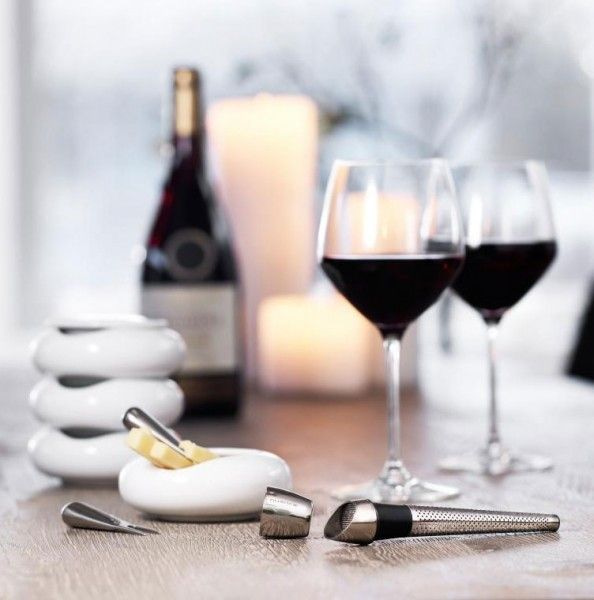 De wijnverfijner is gemaakt van stainless steel en verpakt in een mooie geschenkverpakking.