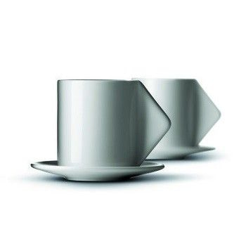 Stijlvolle espresso kopjes met schotel en lange comfortabele oortjes. De kopjes zijn gemaakt van Bone China porselein met een vernieuwd zachte glans.