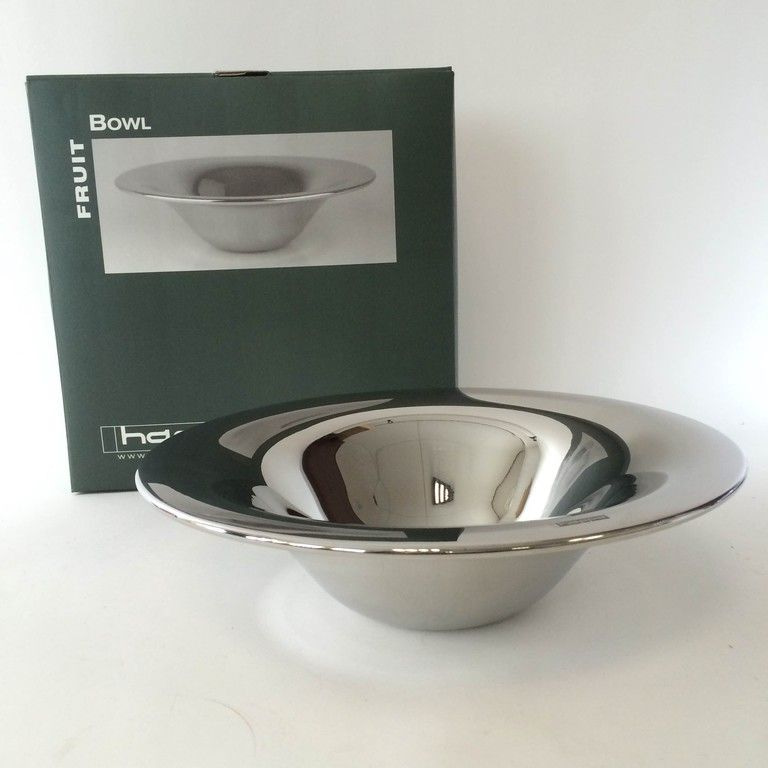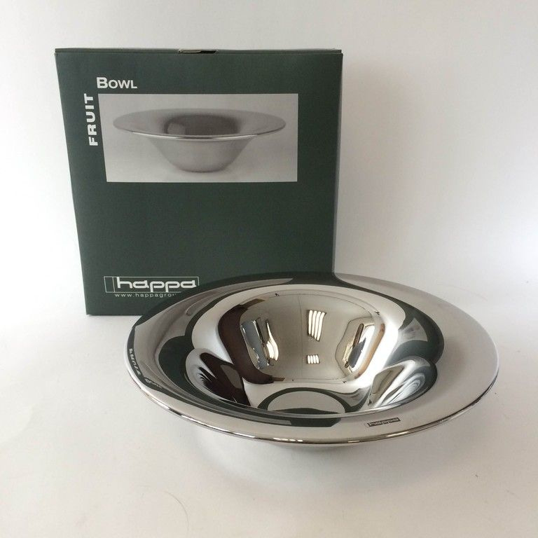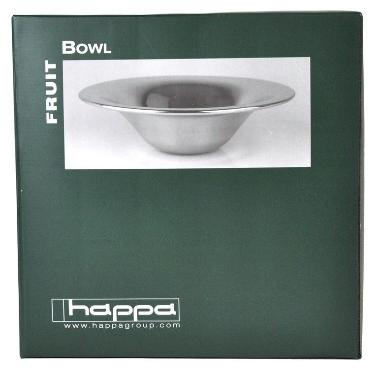 Luxe fruitschaal van het merk "Happa". Verpakt in een mooie verpakking. De fruitschaal is van roestvrij staal en een schitterend stuk decoratie in het huis.