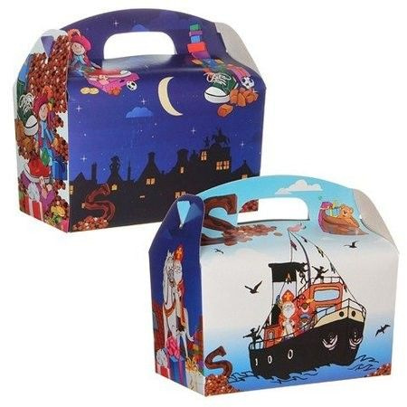 Menubox met het thema: Sinterklaas. Sinterklaas met o.a. de stoomboot, de Sint op de daken en natuurlijk pakjes en pepernoten. Om helemaal in de Sint-sfeer te komen! De doos is makkelijk stapelbaar doordat de bovenkant iets wijder uitloopt. Het bodem ontwerp is vernieuwd met dubbele flap waardoor dus een nog stevigere bodem. Het bodemontwerp is vernieuwd met dubbele flap waardoor dus een nog stevigere bodem.
