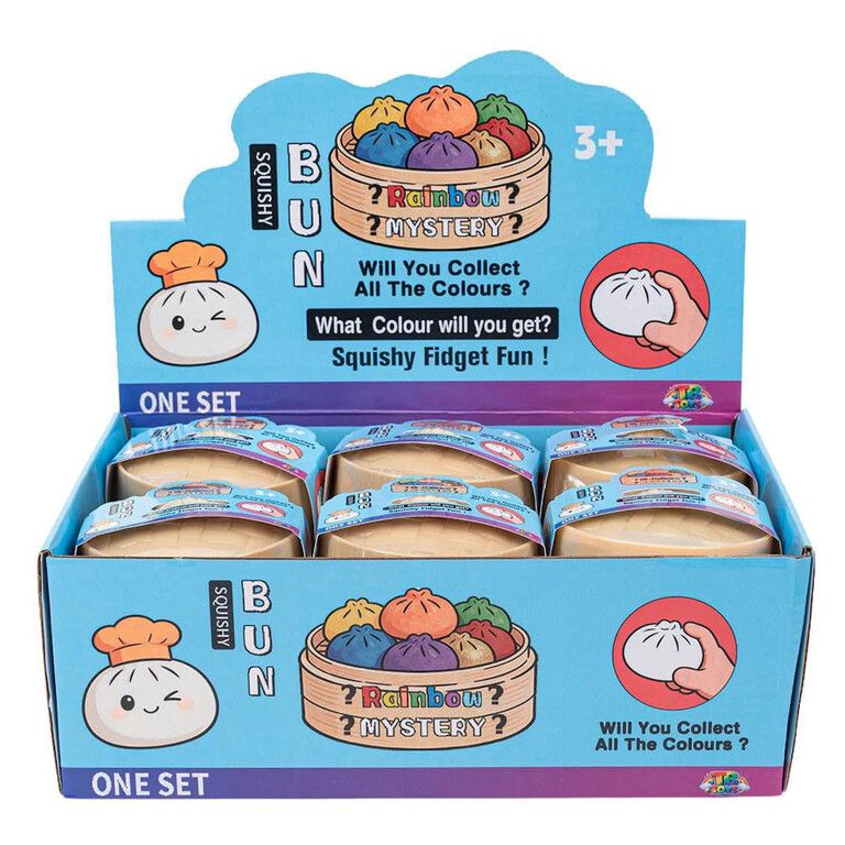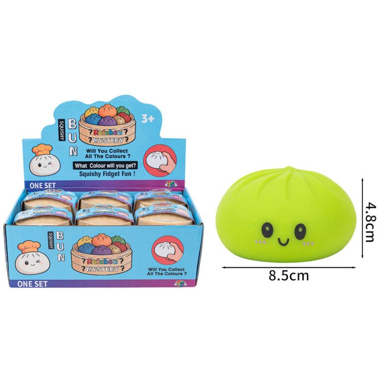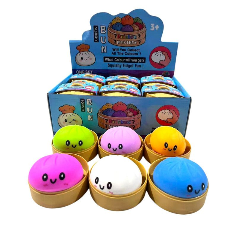 Deze set bevat maar liefst 12 stuks in een handige display, perfect voor verkoop, cadeaus of om uit te delen. De squishy buns voelen heerlijk zacht aan en keren langzaam terug naar hun originele vorm. Dit maakt ze niet alleen leuk speelgoed, maar ook ideaal als hulpmiddel tegen stress en spanning.