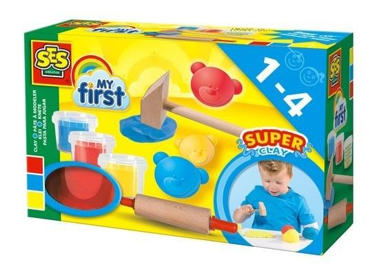 Met deze kleiproducten van SES zit je altijd goed. Deze set bevat 3 vrolijke kleuren klei en klei gereedschap. Je kunt met de hamer en roller je creativiteit de vrije loop laten. Wat ga jij maken?