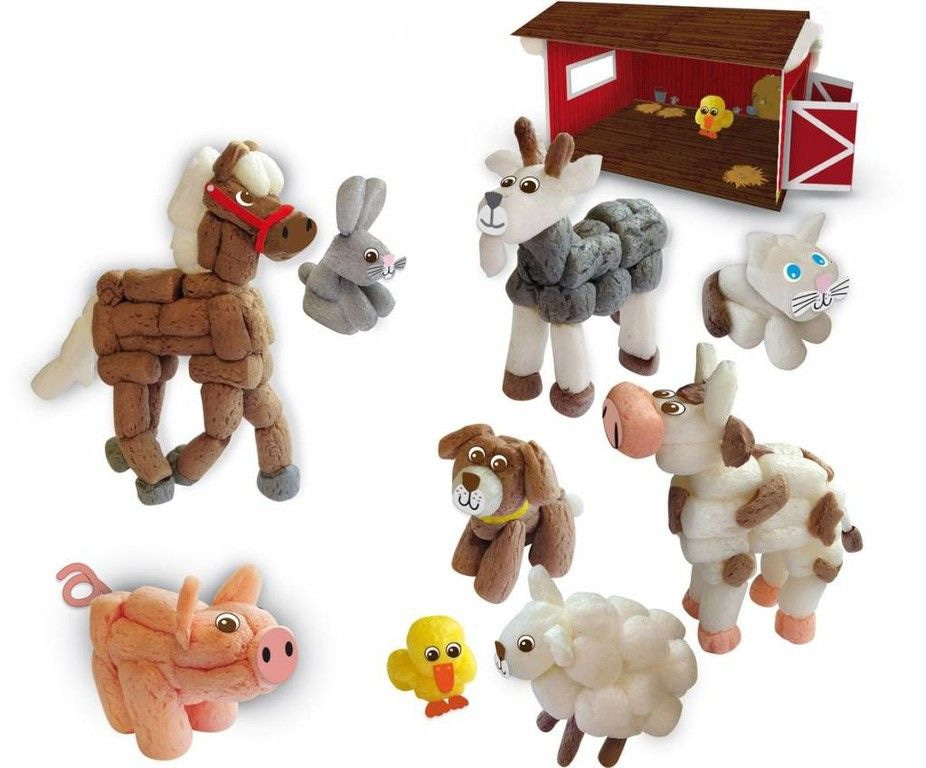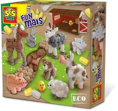 Bouw eenvoudig de leukste creaties met Funmais van SES! Plak de steentjes aan elkaar met een beetje water, je hebt geen lijm nodig. Met deze set maak je een compleet boerenerf van Funmais, met een koe, geit, schaap, konijn, varken, kat, hond en kippen. Je dieren worden nog leuker met de drukwerk details, zoals ogen en voetjes. Plaats je dieren op de ondergrond en klaar is je boerderij! Natuurlijk kun je er zelf nog andere leuke figuren bij knutselen.