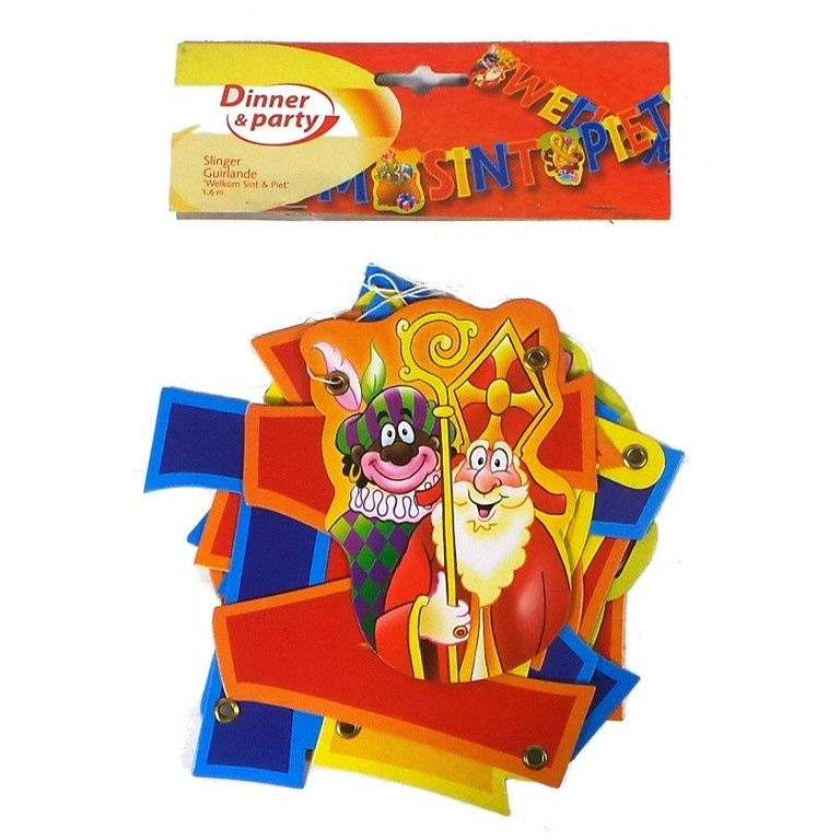 Kleurrijke slinger met de tekst "Welkom Sint en Piet". Mooie decoratie voor in huis, vereniging of in de winkel.