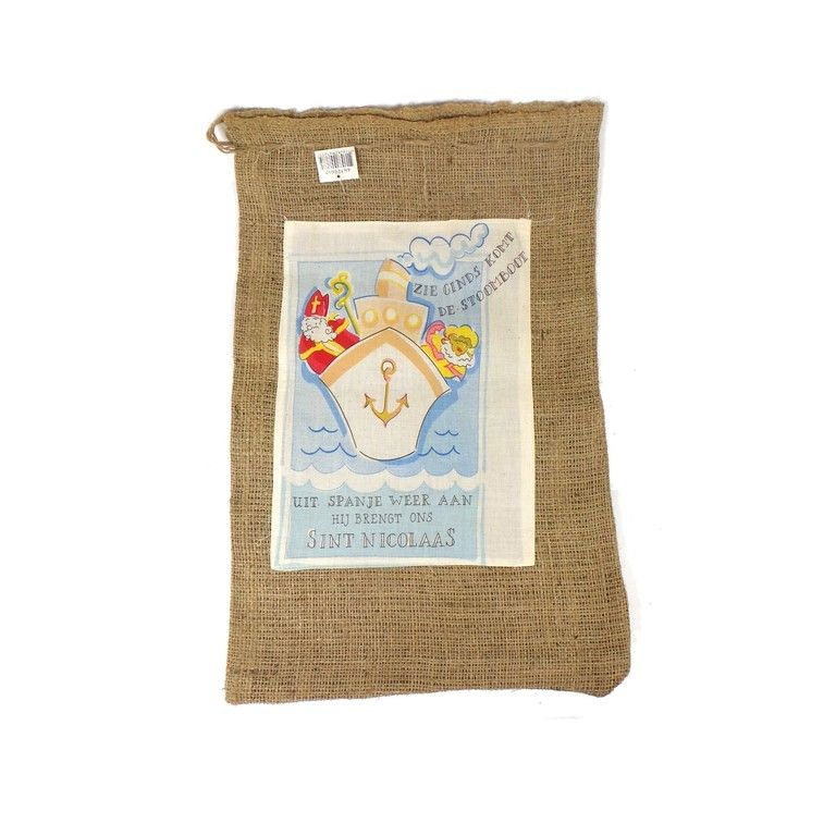 Medium jute zak voor Sinterklaas en zijn Pieten. Ideaal voor het verpakken van veel cadeaus. Wordt in verschillende uitvoeringen geleverd.