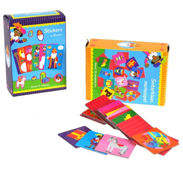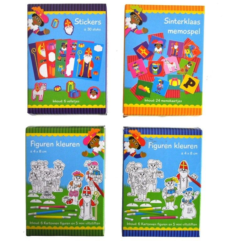Leuke Sinterklaas schoencadeautjes in doosje. In deze doosjes zitten bijvoorbeeld kleine poppetjes met viltstiften, kleurplaten, stickers en memory.