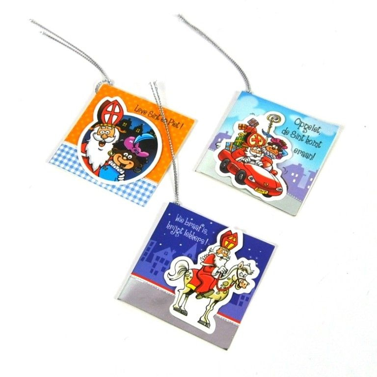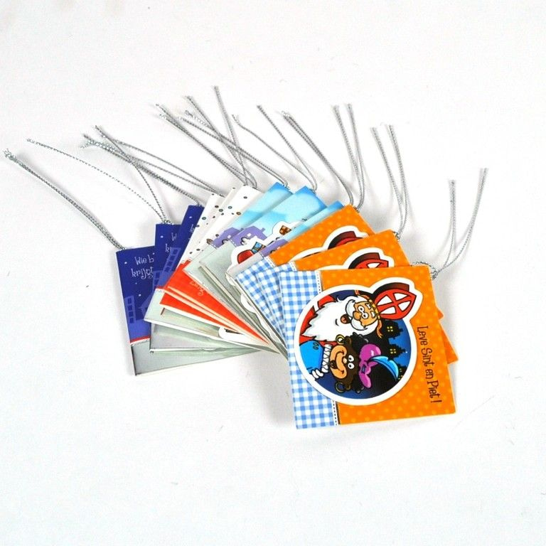 Leuke Sinterklaas labels met vrolijke plaatjes er op. Deze labels zijn goed te gebruiken om aan cadeautjes te hangen en een leuke tekst er op te schrijven, net als een kaartje aan de bloemen.