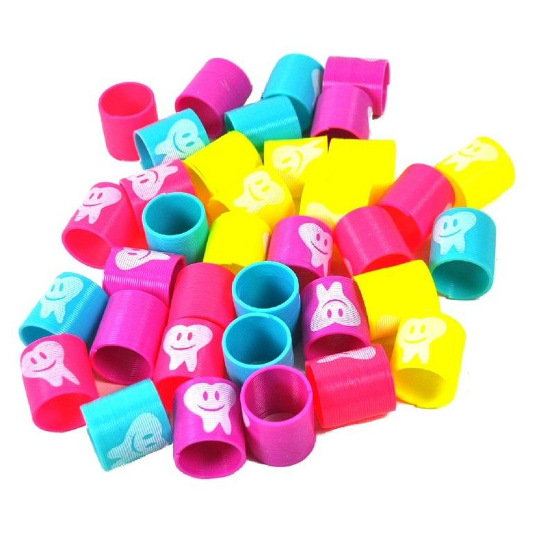 Schattige kleine spiralen en verschillende kleuren. Hartstikke leuk kleinigheidje voor in bijvoorbeeld een grabbelton. Een tijdloos artikel, leuk voor jongens en meisjes. Op het spiraaltje staat een lachende tand afgebeeld