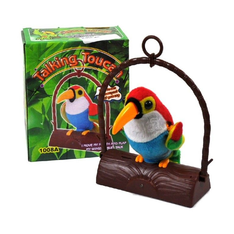 Schitterend artikel, een echte pratende papegaai. Jij zegt het, en de papegaai herhaalt het... tot twee keer toe. Tevens voorzien van leuke verschillende jungle geluiden. Exclusief batterijen.