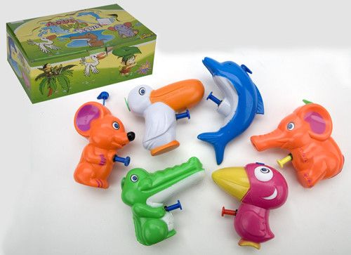 Kleine waterpistooltjes in de vorm van diverse dieren. Een leuk en tijdloos artikel voor in de zomer.