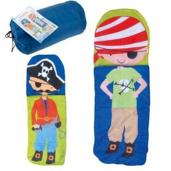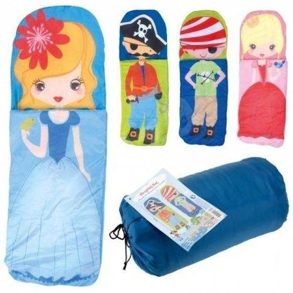 Slaapzak voor kinderen in handige opbergzak. Leuke jongens en meisjes kinderslaapzakken, met rits en piraten of princess opdruk.