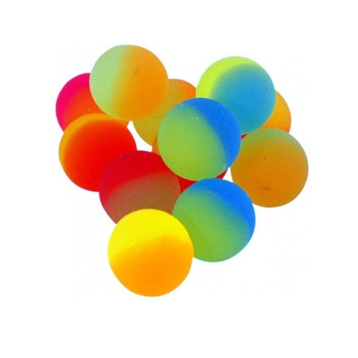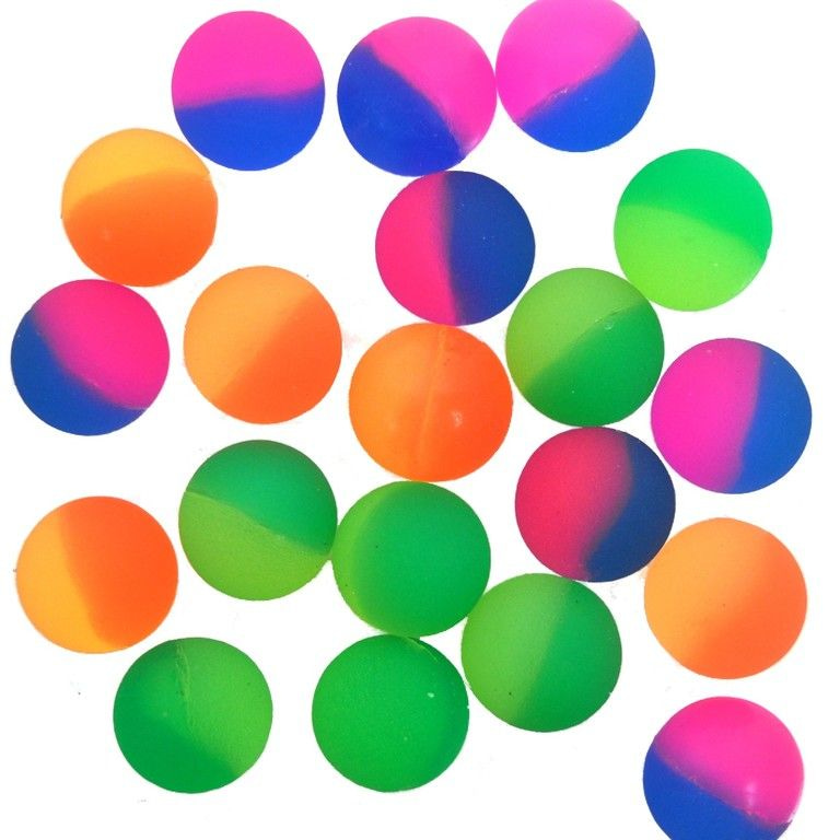Mooie gekleurde stuiterballen met een doorsnee van circa 2.7 centimeter. Leuk klein speelgoed voor in bijvoorbeeld een grabbelton.