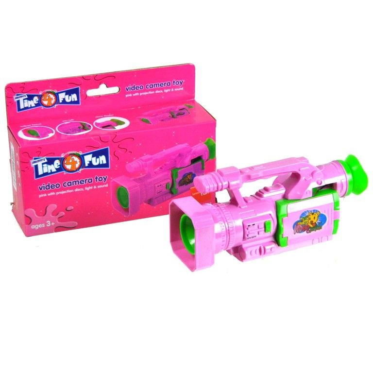 Een mooie roze dia video camera voor meisjes. Draai een het wieltje en je ziet verschillende plaatjes voorbij komen.