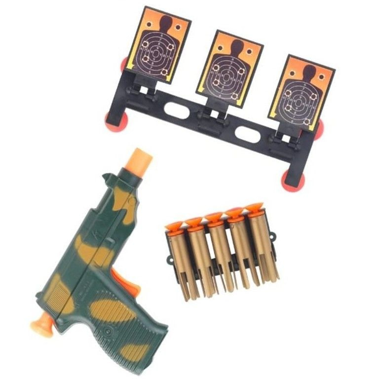 Stoere speelset voor jongens verpakt op een kaart. In deze set zitten 5 pijltjes, 3 doelwitten en een pistool. Ideale handel voor op de kermis.