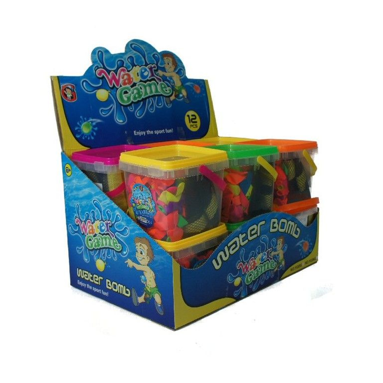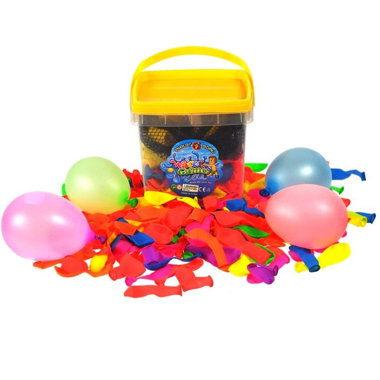 Een emmertje vol met velgekleurde waterballonnen en draagtasje. Schitterend speelgoed voor in de zomer, voor zowel jongens als meisjes
