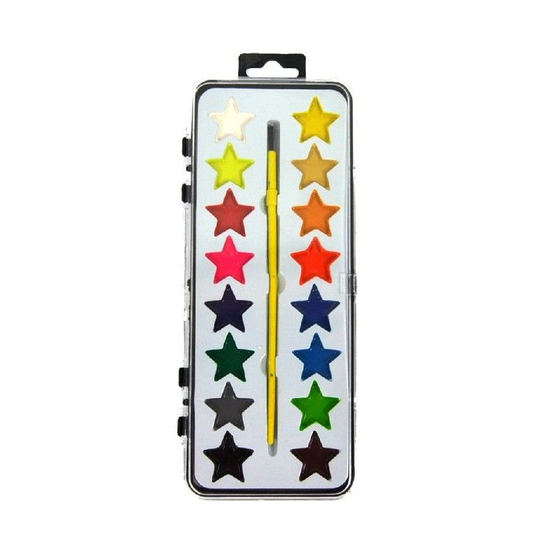 Een leuke set met verschillende kleuren waterverf en een penseeltje. Gezamenlijk verpakt in een doosje die je kan openklappen.