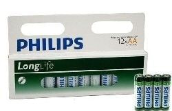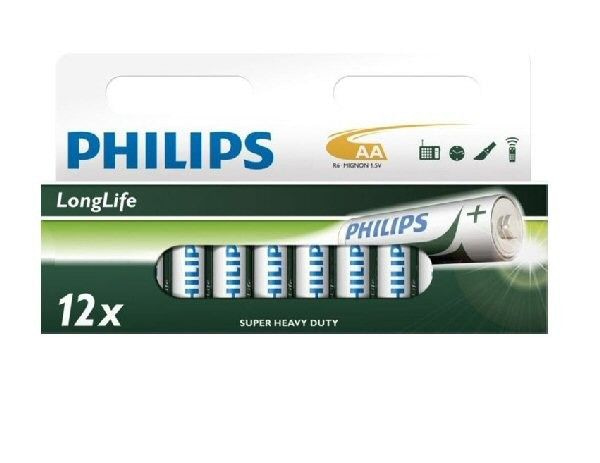 12x BATTERIJ "PHILIPS - SUPER HEAVY DUTY" AA - LONGLIFE (12st. op Blisterkaart)