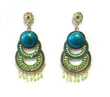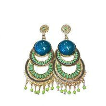 S_600405A - LUXE OORBEL TURQUOISE STEEN MET KRALEN - BLAUW (1st)
