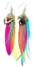 S_600037I - IBIZA LOOK OORBELLEN MET VEER FUCHSIA/BLAUW/GEEL (1st)