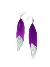 S_600152D - OORBELLEN MET VEER EN GLITTER PAARS (1st)