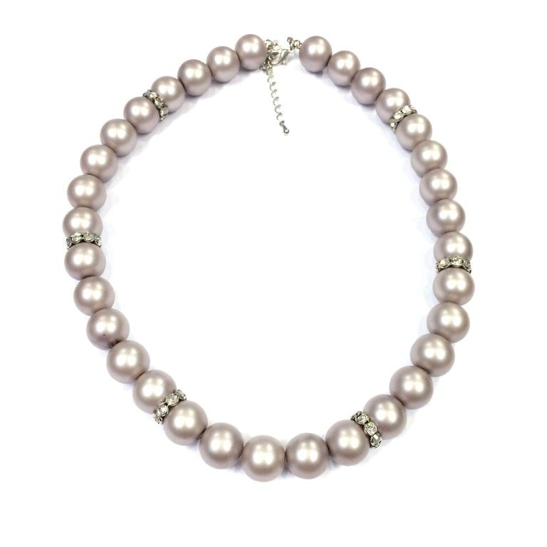 S_796093B - PAREL HALSKETTING GLANS MET STRASS TAUPE/ZILVER (4st)