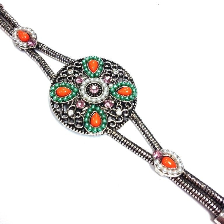 S_600041G - IBIZA LOOK ARMBAND GEVLOCHTEN MULTICOLOR MET STRASS HART (1st)