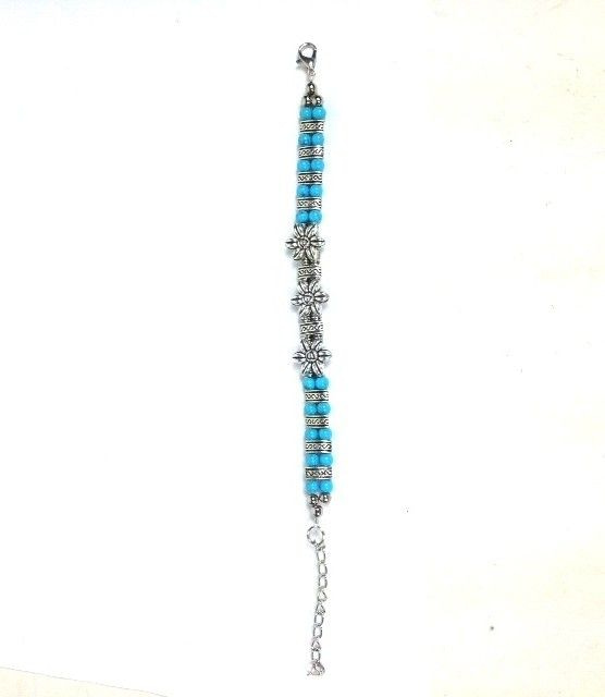 S_600620M - ARMBAND SILVERLOOK/TURQUOISE (12st)