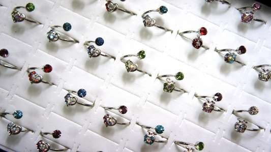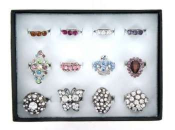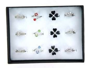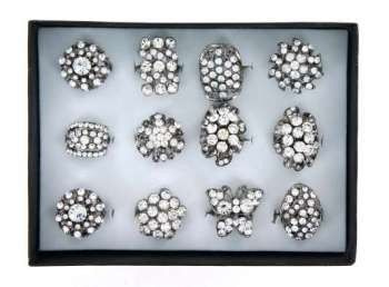 S_70211AR - LUXE EXCLUSIEVE RINGEN MET BOX ASSORTI STRASS ZILVER (6st)