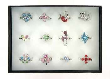 S_70211AQ - LUXE EXCLUSIEVE RINGEN MET BOX ASSORTI BLOEM/VLINDER(6st)