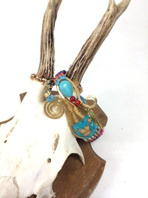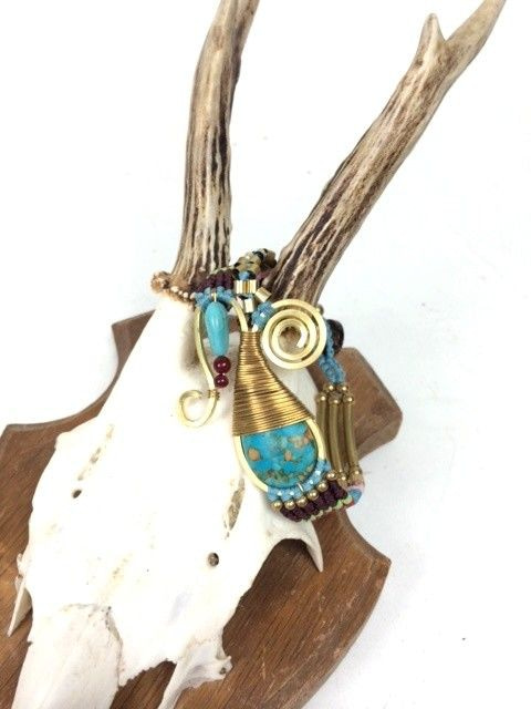 S_600201E - HANDMADE IBIZA ORIGINALS ARMBAND BLUESTONE COGNAC (1st)