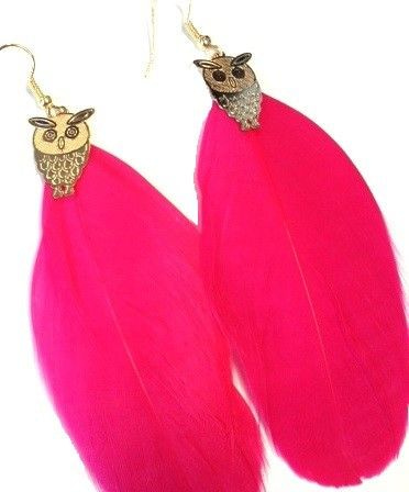 S_600121D - OORBELLEN MET UIL EN VEER FUCHSIA (1st)