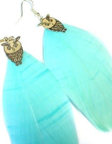 S_600121E - OORBELLEN MET UIL EN VEER TURQUOISE (1st)