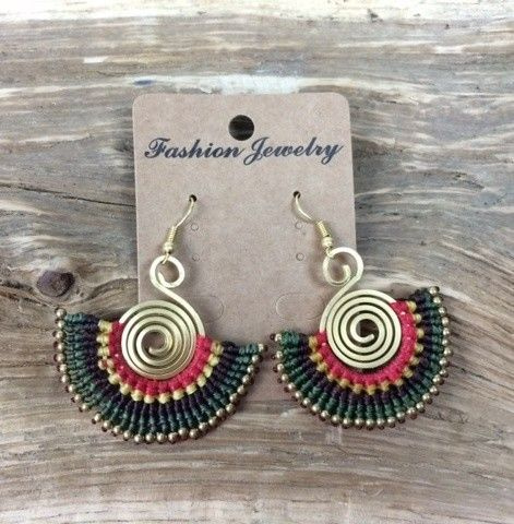 S_600212J - HANDMADE IBIZA ORIGINALS OORBELLEN ROOD/BRUIN (1st)