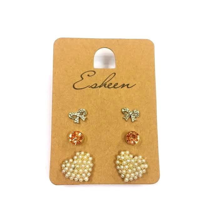 S_812209 - OORBELLEN 3 PAAR STRIKJE / STRASS KNOPJE / HARTJE MET PARELS (4st)