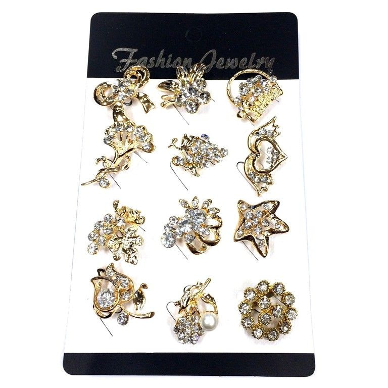 S_75326 - BROCHE GOUD MET STRASS ASSORTI (12st)
