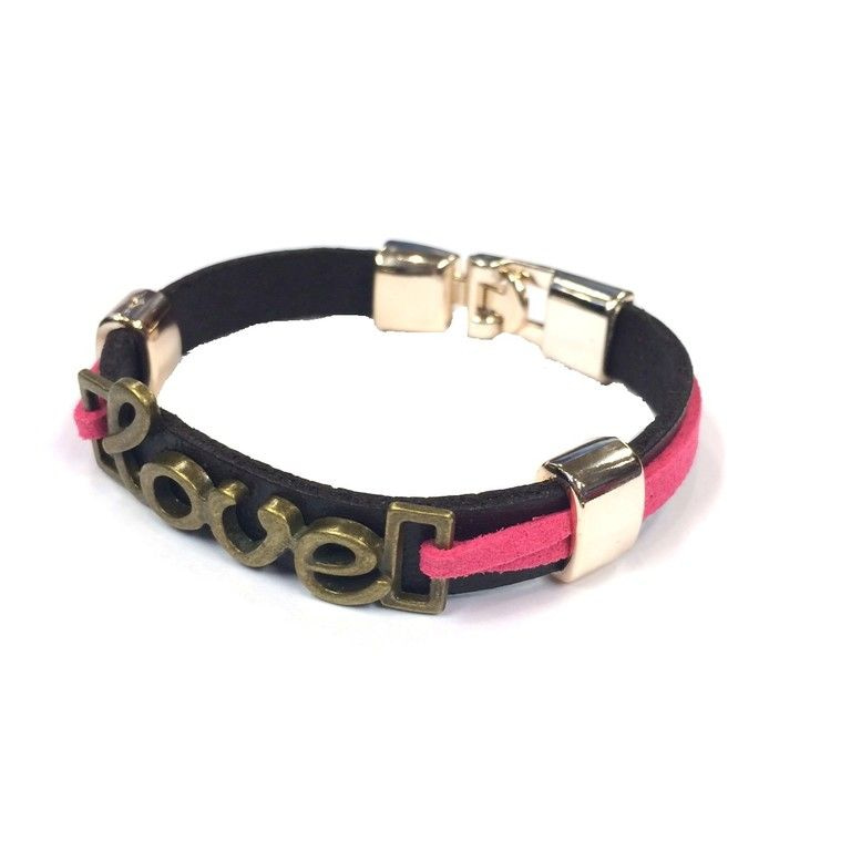 S_811346C - LEDEREN ARMBAND ROZE LOVE (3st)