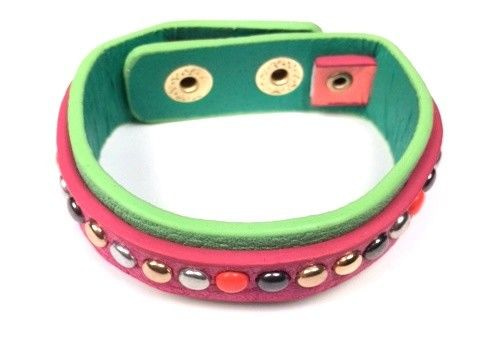S_8765407 - IBIZA LOOK ARMBAND GROEN/FUCHSIA STUDS (1st)