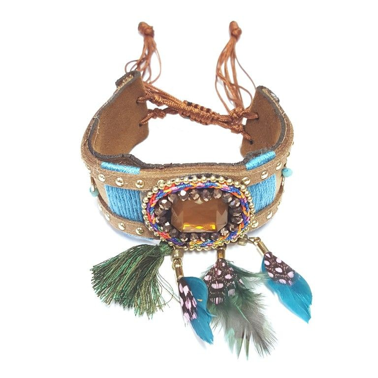 S_9379500 - LUXE ARMBAND VEREN & STEEN - MODEL BRUIN/TURQUOISE (1st)
