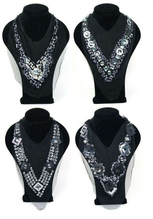 S_87137 - MOOIE HALSKETTING / SJAAL MET STUDS EN KRALEN - ZWART (8st)