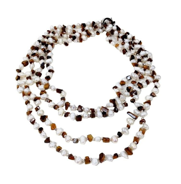 S_796306 - HALSKETTING PAREL/KRAAL GLANS/MAT GEBROKEN WIT (3st)