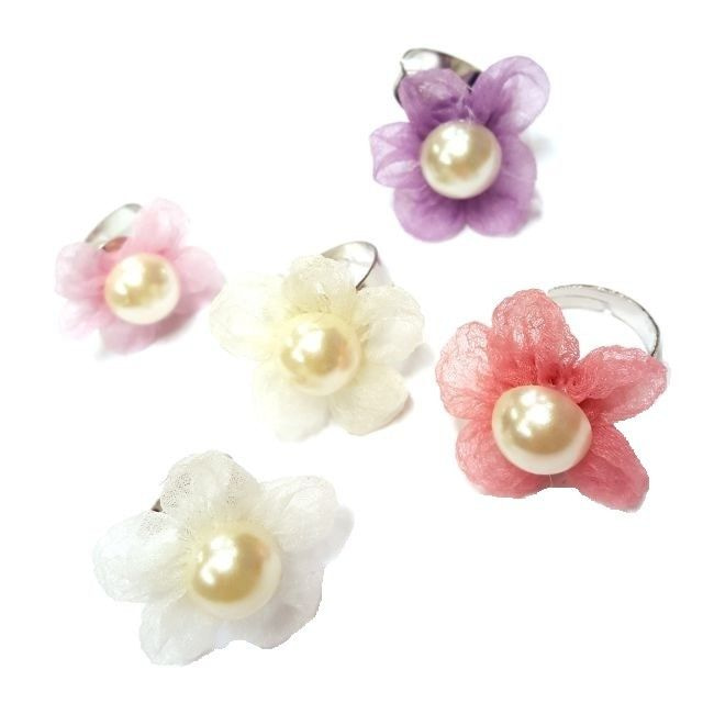 S_810024 - FASHION FLOWER RING PEARL (50st)