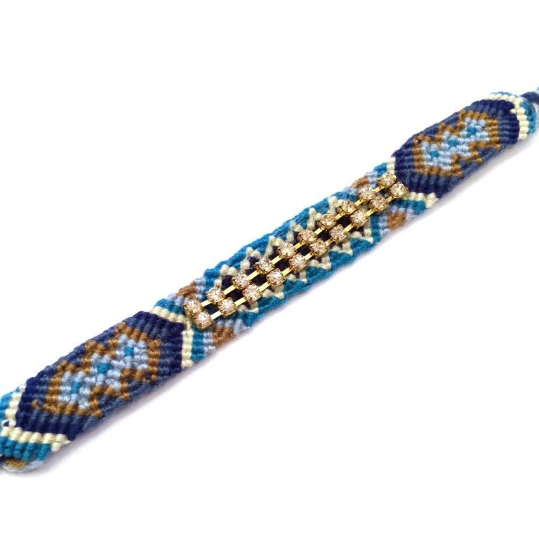 S_600043F - IBIZA LOOK ARMBAND GEVLOCHTEN BLAUW MET STRASS (1st)