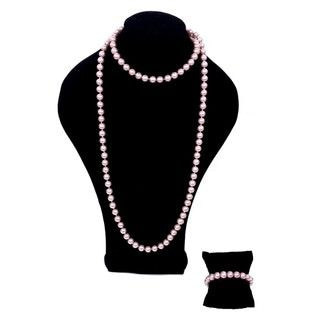 S_70212L - PAREL SET HALSKETTING & ARMBAND EXCLUSIEF ROZE/PAARS/TAUPE (1st)