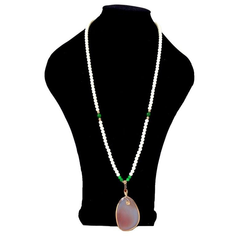 S_600593B - HALSKETTING NATUURSTEEN OVAAL ZALM (1st)
