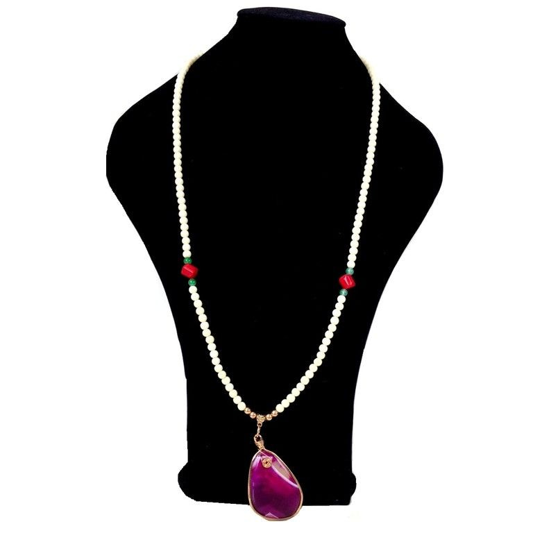 S_600593F - HALSKETTING NATUURSTEEN OVAAL PAARS/ FUCHSIA (1st)