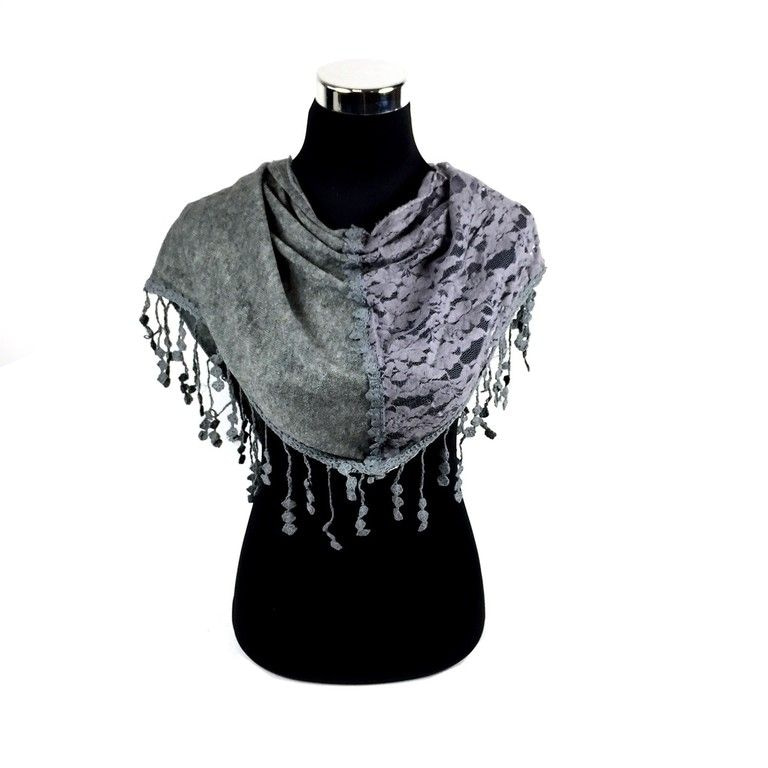 S_70015AI - DRIEHOEK SJAAL GRIJS MET KANT (1st)