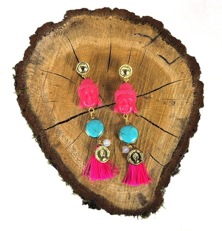 S_5672305 - IBIZA LOOK OORBELLEN TURQUOISE / FUCHSIA BUDDHA (1st)