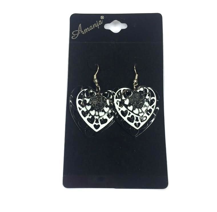 S_89868 - OORBELLEN ZWART/WIT HART (12st)