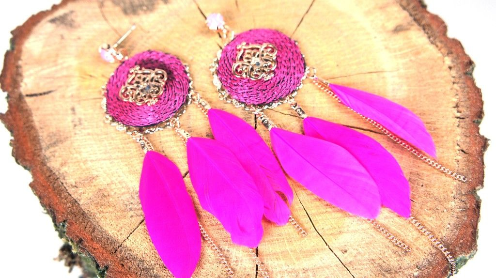S_600032C - IBIZA LOOK OORBELLEN MET VEER FUCHSIA (1st)