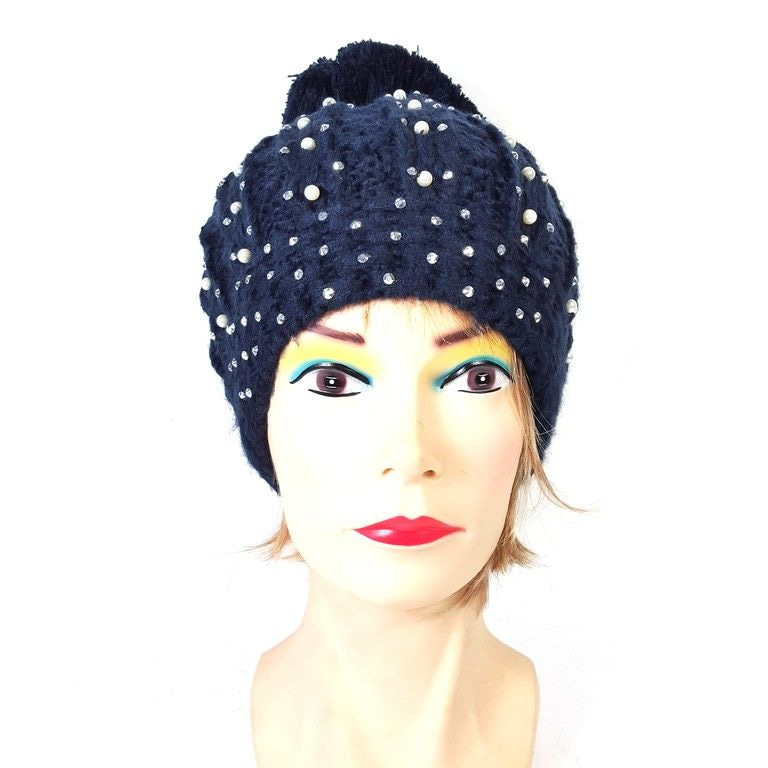 S_60299 - LUXE MUTS MET PARELS EN STRASS STEENTJES - DONKER BLAUW (1st)